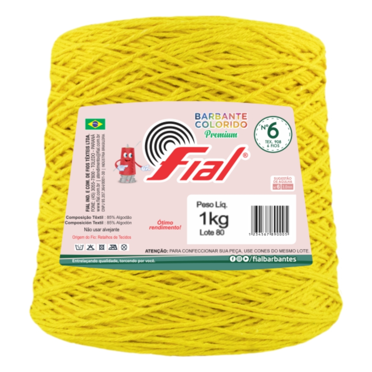 Barbante Colorido Premium Fio 6 1Kg Fial - Amarelo Ouro - Un