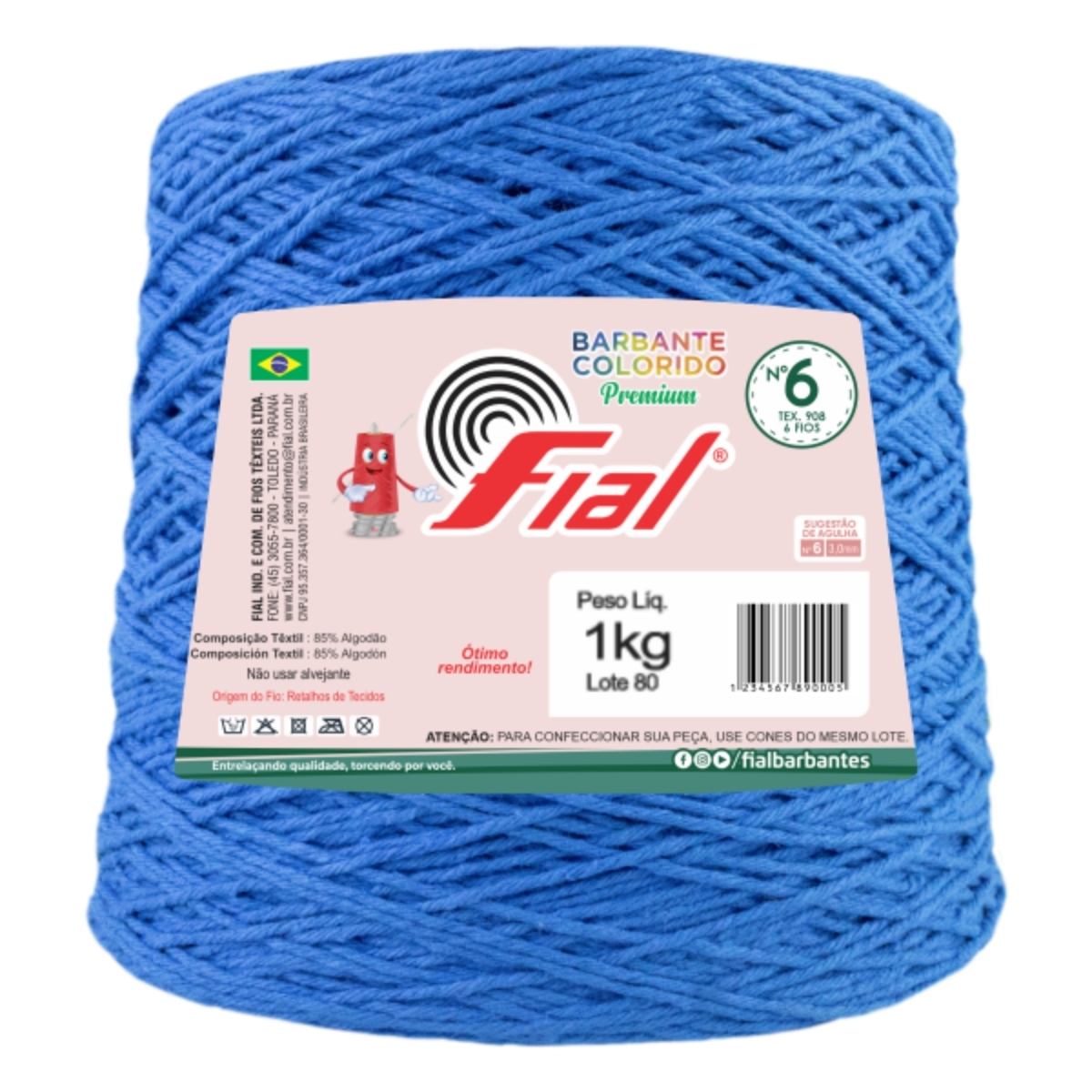 Barbante Colorido Premium Fio 6 1Kg Fial - Azul Royal - Un