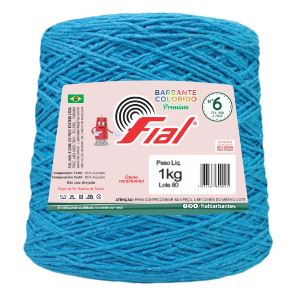 Barbante Colorido Premium Fio 6 1Kg Fial - Azul Turquesa - Un
