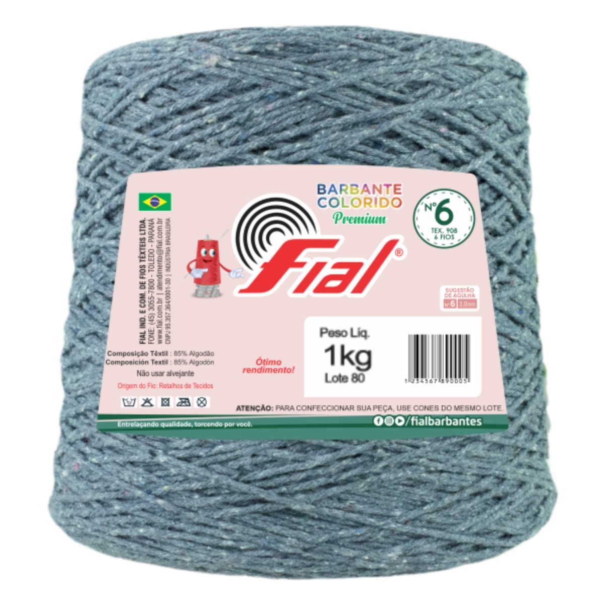 Barbante Colorido Premium Fio 6 1Kg Fial - Jeans - Un