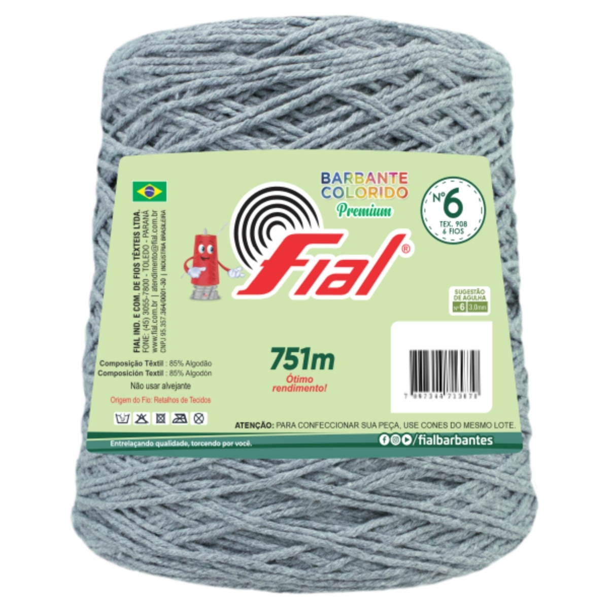 Barbante Colorido Premium Fio 6 700g Fial - Cinza - Un