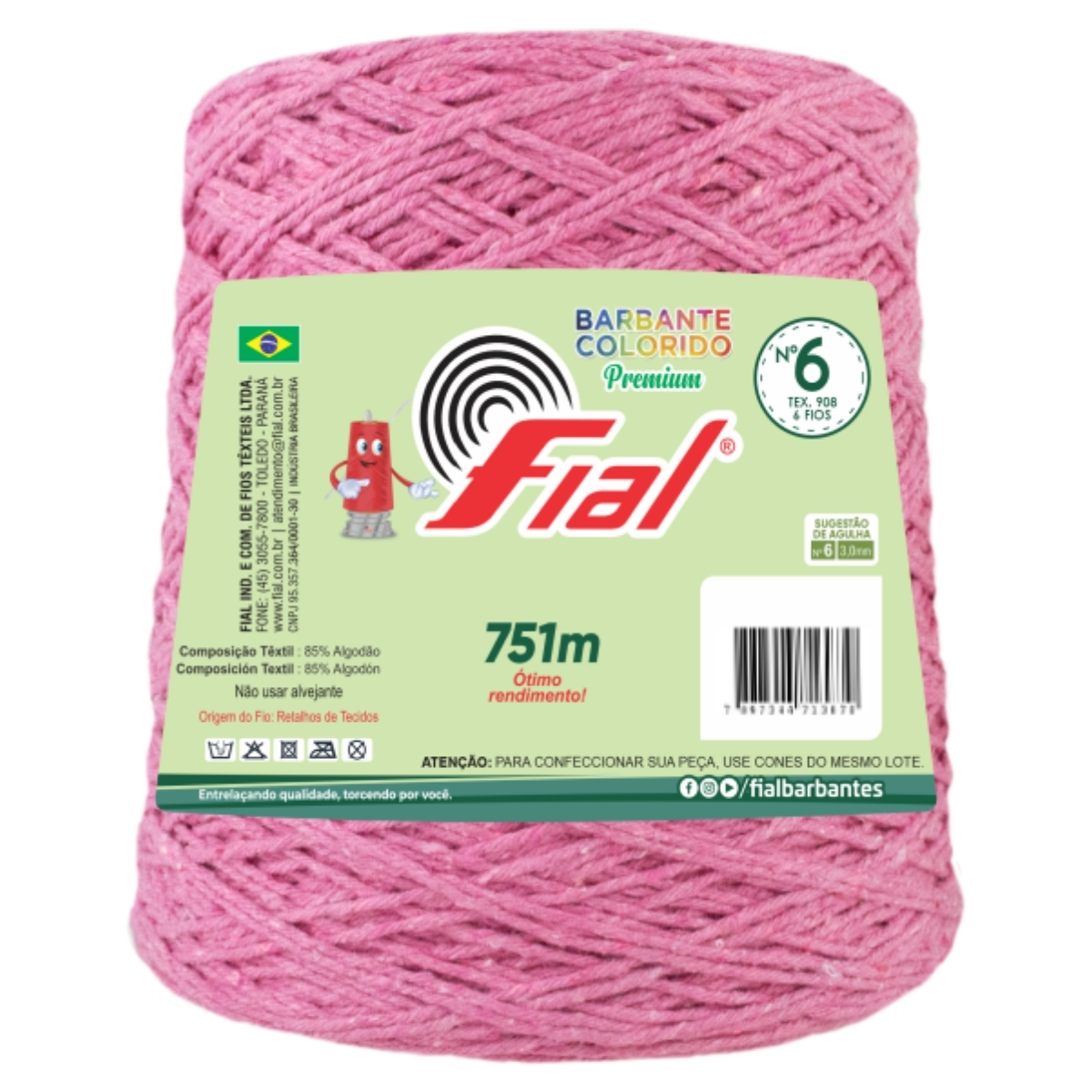 Barbante Colorido Premium Fio 6 700g Fial - Rosa - Un