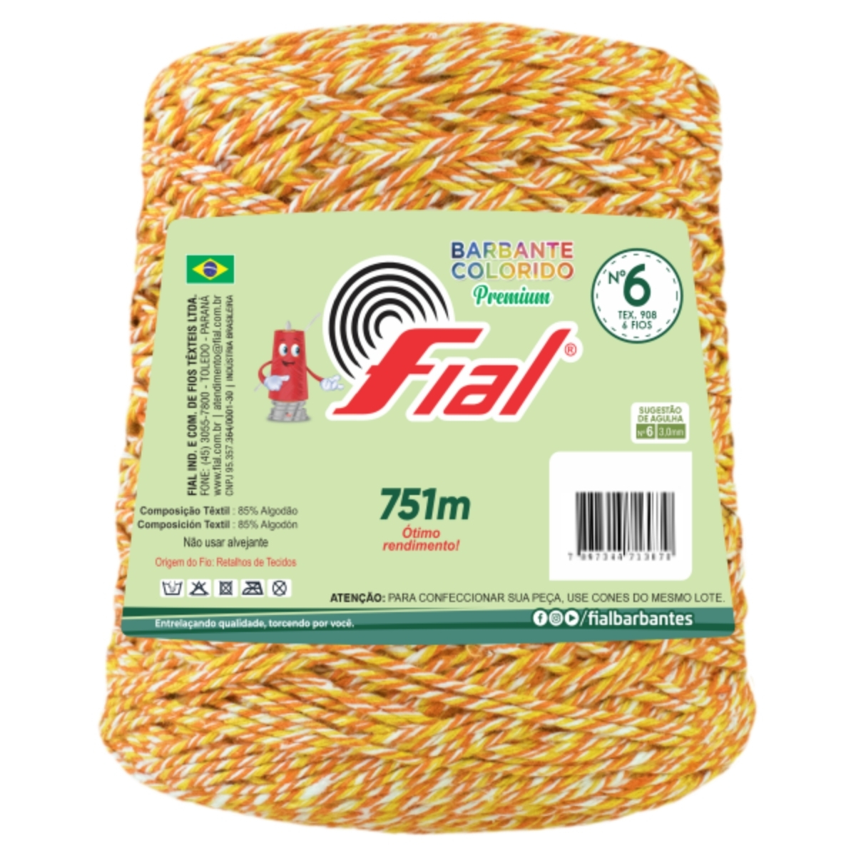 Barbante Mesclado Premium Fio 6 700g Fial - Amarelo/Laranja/Branco - Un