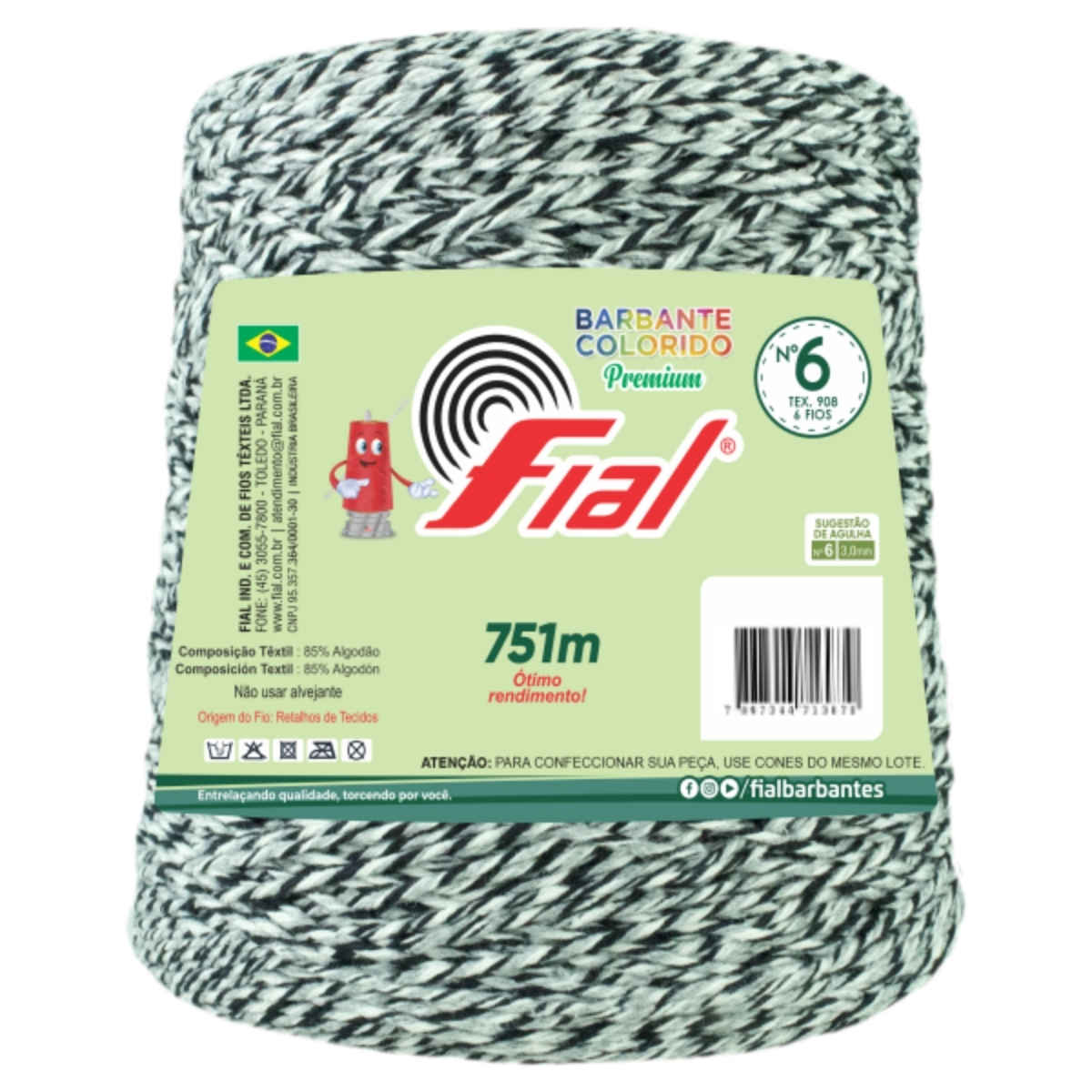Barbante Mesclado Premium Fio 6 700g Fial - Preto/Cinza/Branco - Un
